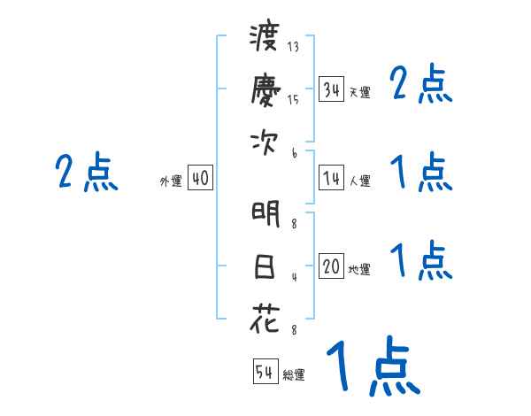 外運![]() | 渡慶次明日花さんの外運は40画の2つ星!自信過剰で物事に固執するためトラブルに注意。 生活面を象徴する運勢です。外部から受ける影響力を表し、結婚運、家庭運や職場、環境への順応性を表します。 |