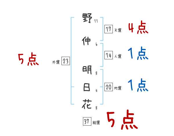野仲明日花さんの画数の鑑定結果