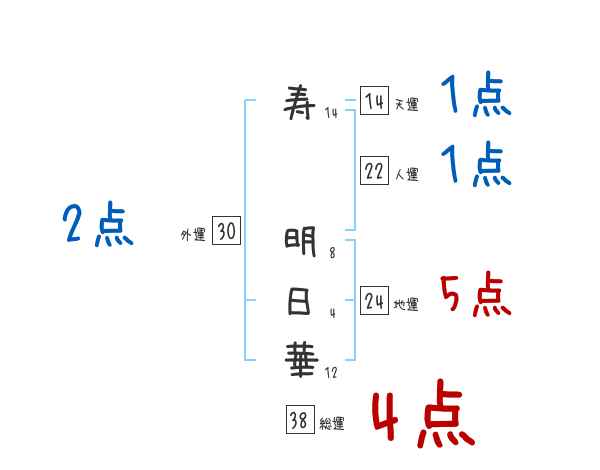 寿明日華さんの画数の鑑定結果