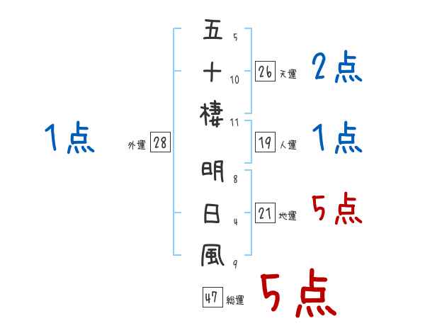 五十棲明日風さんの画数の鑑定結果
