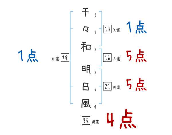 千々和明日風さんの画数の鑑定結果