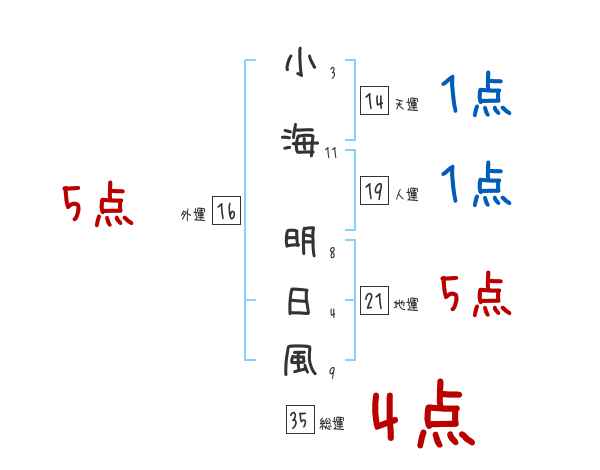 小海明日風さんの画数の鑑定結果