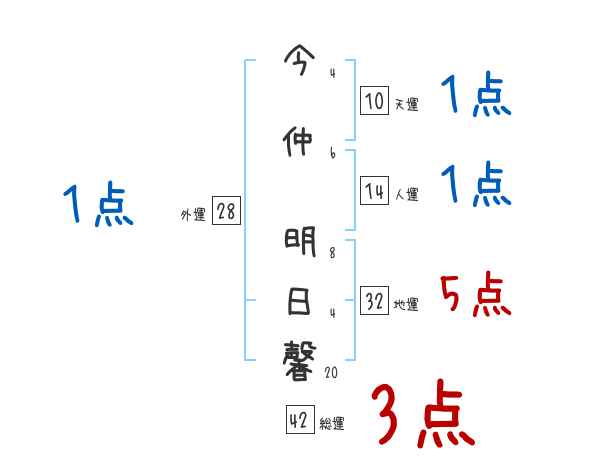 外運![]() | 今仲明日馨さんの外運は28画の1つ星!家庭環境に注意。スポーツで活躍できる能力があるかも。 生活面を象徴する運勢です。外部から受ける影響力を表し、結婚運、家庭運や職場、環境への順応性を表します。 |