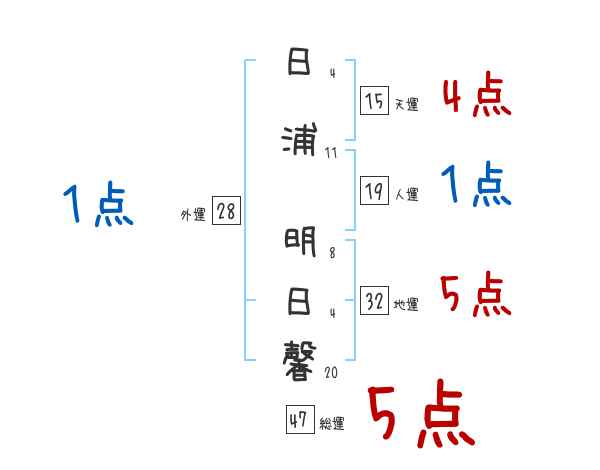 日浦明日馨さんの画数の鑑定結果