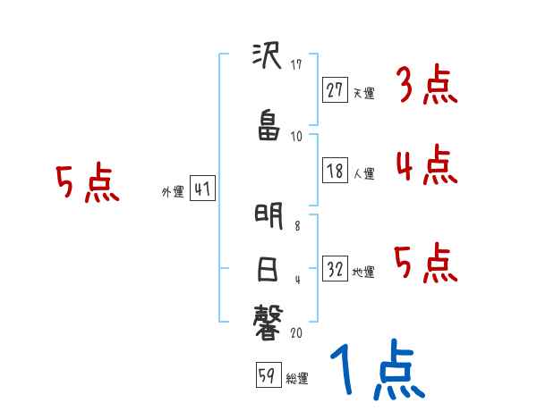沢畠明日馨さんの画数の鑑定結果