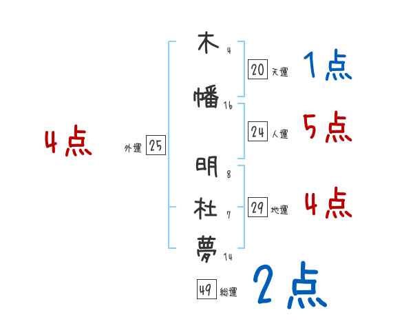 総運![]() | 木幡明杜夢さんの総運は49画の2つ星!不安定な性格で明暗がある人生。周りの人には支援されやすい。 あなたの人生を表す1番重要な運勢です。生涯を通じて影響する総合運となり、主に50歳以降の晩年期に影響を及ぼします。 |
