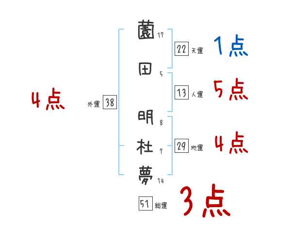 家系が持つ宿命的な運勢を表します。祖先から受け継いだ苗字ですので自分の力が及びません。家柄を象徴します。