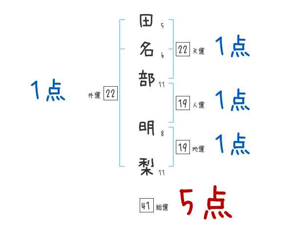 天運![]() | 田名部明梨さんの天運は22画の1つ星!努力することが苦手ないっぽう手先が器用。芸術性にも優れる。 家系が持つ宿命的な運勢を表します。祖先から受け継いだ苗字ですので自分の力が及びません。家柄を象徴します。 |