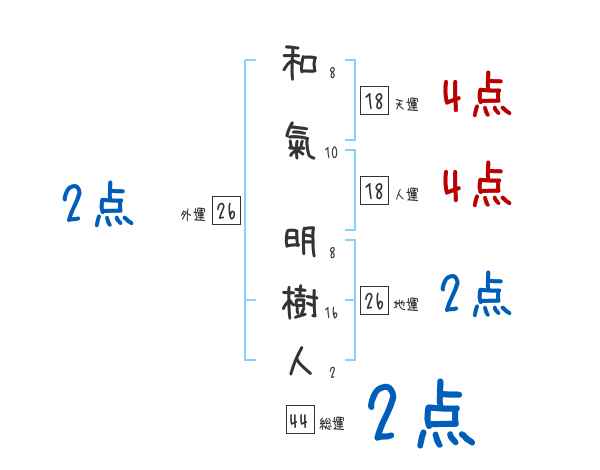 和氣明樹人さんの画数の鑑定結果