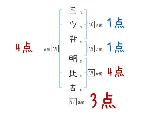 三ツ井明比古さんの画数の鑑定結果