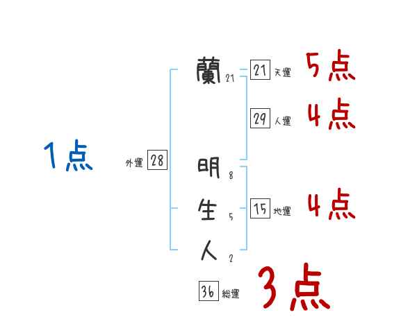 蘭明生人さんの画数の鑑定結果