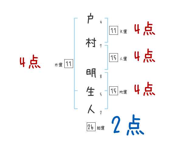 戸村明生人さんの画数の鑑定結果