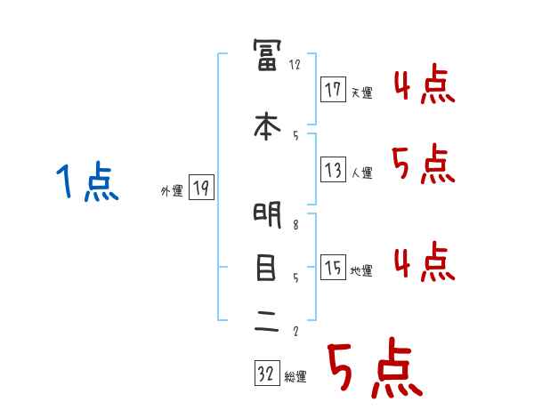 冨本明目二さんの画数の鑑定結果