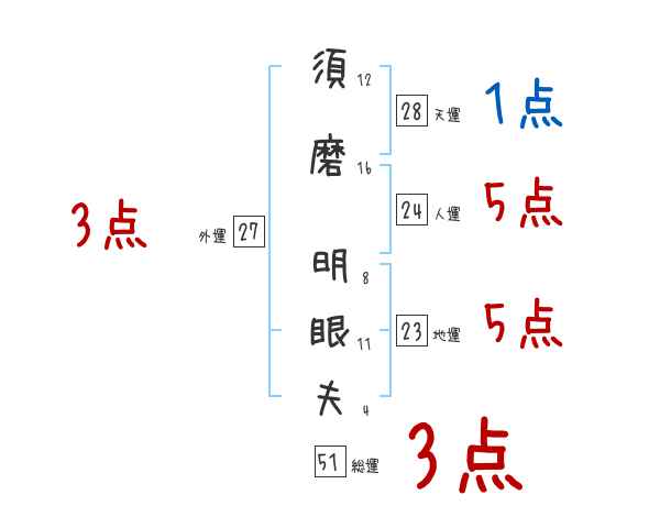 須磨明眼夫さんの画数の鑑定結果