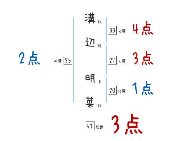 溝辺明菜さんの画数の鑑定結果