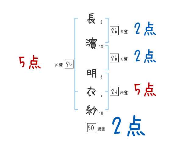 長濵明衣紗さんの画数の鑑定結果