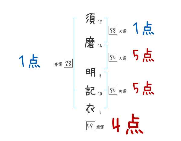 天運![]() | 須磨明記衣さんの天運は28画の1つ星!家庭環境に注意。スポーツで活躍できる能力があるかも。 家系が持つ宿命的な運勢を表します。祖先から受け継いだ苗字ですので自分の力が及びません。家柄を象徴します。 |