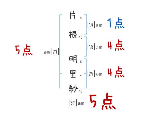 外運![]() | 片根明里紗さんの外運は21画の5つ星!統率力がある。独立し成功する。名誉を手に入れる。 生活面を象徴する運勢です。外部から受ける影響力を表し、結婚運、家庭運や職場、環境への順応性を表します。 |
