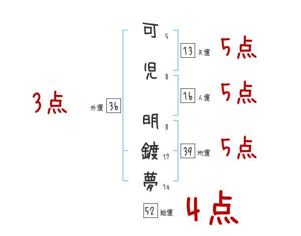 可児明鍍夢さんの画数の鑑定結果