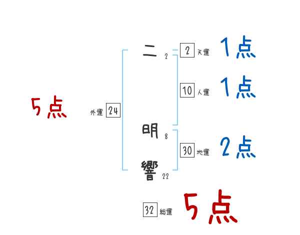 二明響さんの画数の鑑定結果