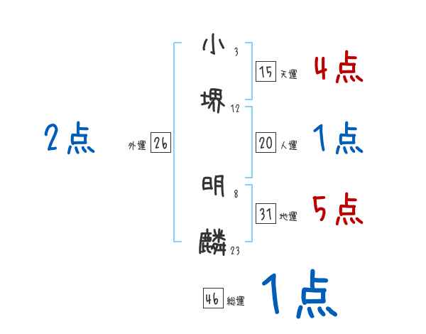 小堺明麟さんの画数の鑑定結果