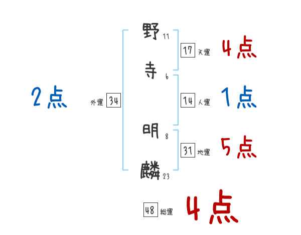 野寺明麟さんの画数の鑑定結果
