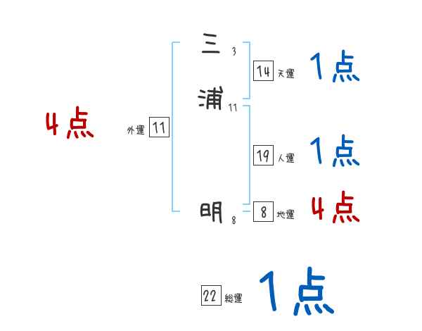 天運![]() | 三浦明さんの天運は14画の1つ星!人に対して優しいがストレスを溜め込みがち。人間関係のトラブルを避けるよう気をつけましょう。 家系が持つ宿命的な運勢を表します。祖先から受け継いだ苗字ですので自分の力が及びません。家柄を象徴します。 |
