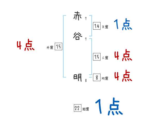 赤谷明さんの画数の鑑定結果