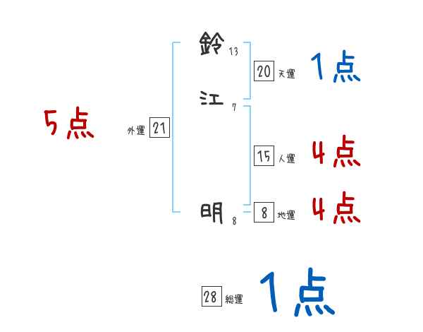 外運![]() | 鈴江明さんの外運は21画の5つ星!統率力がある。独立し成功する。名誉を手に入れる。 生活面を象徴する運勢です。外部から受ける影響力を表し、結婚運、家庭運や職場、環境への順応性を表します。 |