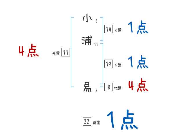 地運![]() | 小浦易さんの地運は8画の4つ星!勤勉家。根気強く努力し成功する。忍耐力がある。 個性を表す基礎的な運勢です。性格形成や対人関係、行動力など家庭環境に影響されます。主に誕生してから20歳くらいまでの若年期の運勢を表します。 |
