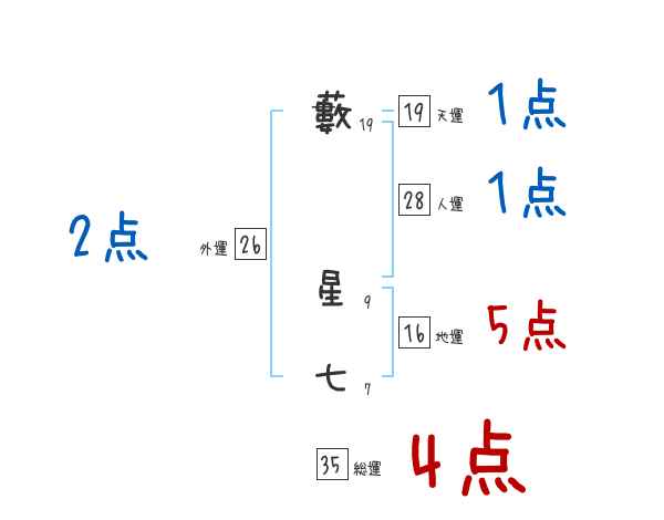 藪星七さんの画数の鑑定結果