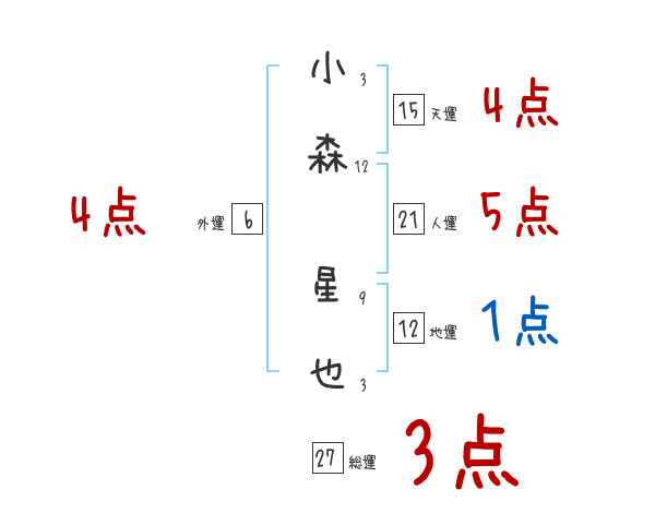 小森星也さんの画数の鑑定結果