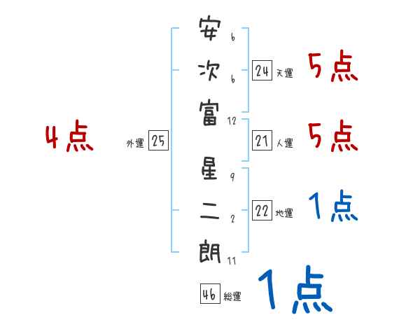 安次富星二朗さんの画数の鑑定結果