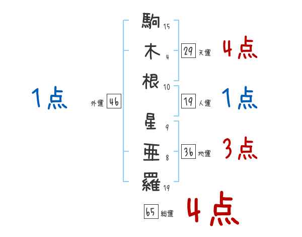 駒木根星亜羅さんの画数の鑑定結果