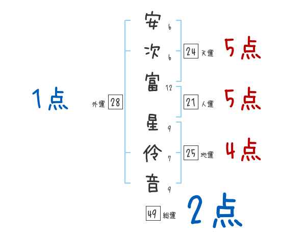 安次富星伶音さんの画数の鑑定結果