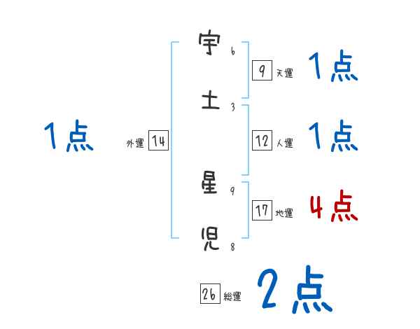 宇土星児さんの画数の鑑定結果