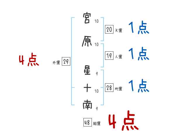 家系が持つ宿命的な運勢を表します。祖先から受け継いだ苗字ですので自分の力が及びません。家柄を象徴します。