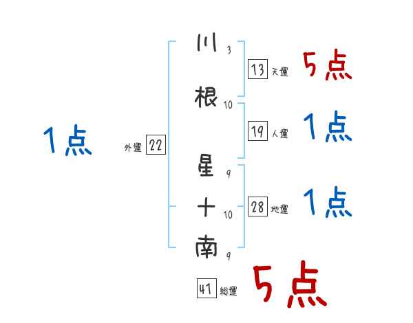 地運![]() | 川根星十南さんの地運は28画の1つ星!家庭環境に注意。スポーツで活躍できる能力があるかも。 個性を表す基礎的な運勢です。性格形成や対人関係、行動力など家庭環境に影響されます。主に誕生してから20歳くらいまでの若年期の運勢を表します。 |