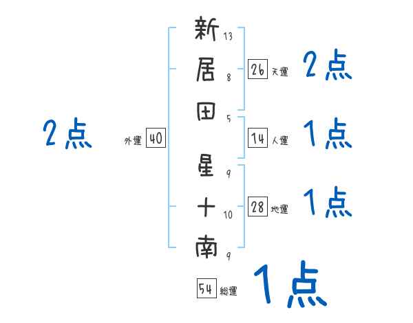 新居田星十南さんの画数の鑑定結果