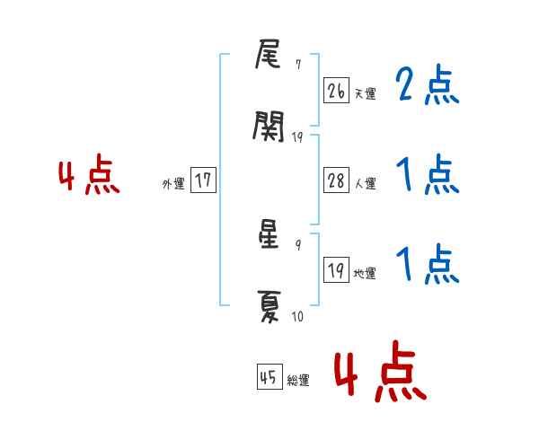 外運![]() | 尾関星夏さんの外運は17画の4つ星!積極的な行動力。地位を気づき財産を手に入れる。純粋な心と直感力。 生活面を象徴する運勢です。外部から受ける影響力を表し、結婚運、家庭運や職場、環境への順応性を表します。 |