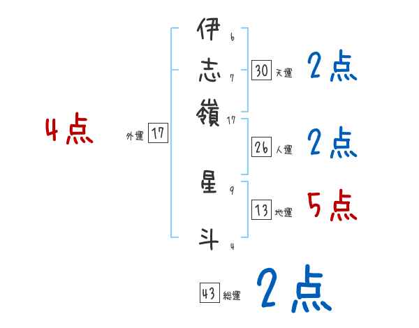 伊志嶺星斗さんの画数の鑑定結果