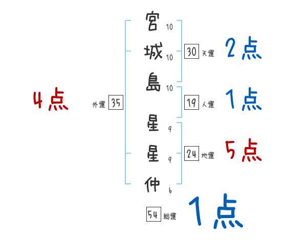 家系が持つ宿命的な運勢を表します。祖先から受け継いだ苗字ですので自分の力が及びません。家柄を象徴します。
