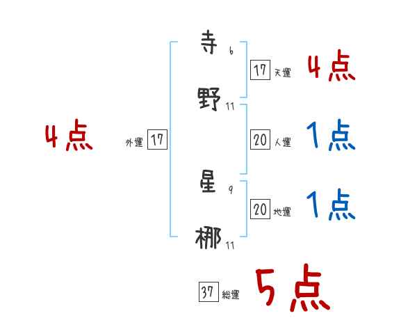 外運![]() | 寺野星梛さんの外運は17画の4つ星!積極的な行動力。地位を気づき財産を手に入れる。純粋な心と直感力。 生活面を象徴する運勢です。外部から受ける影響力を表し、結婚運、家庭運や職場、環境への順応性を表します。 |