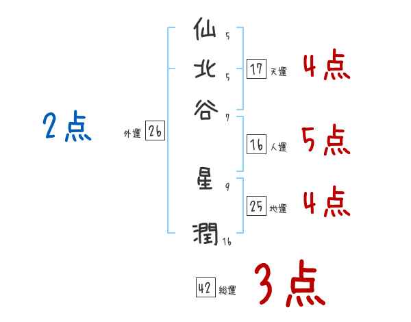 人運![]() | 仙北谷星潤さんの人運は16画の5つ星!人望が厚く大きく発展する。逆転成功が見える。 性格や才能などを表す2番目に重要な運勢です。人間関係や協調性、社会的な成功に影響します。主に20歳から50歳ぐらいまでの中年期の運勢を表します。 |