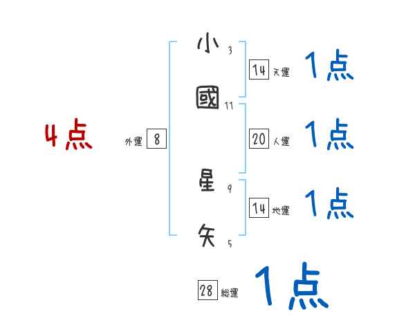 総運![]() | 小國星矢さんの総運は28画の1つ星!家庭環境に注意。スポーツで活躍できる能力があるかも。 あなたの人生を表す1番重要な運勢です。生涯を通じて影響する総合運となり、主に50歳以降の晩年期に影響を及ぼします。 |