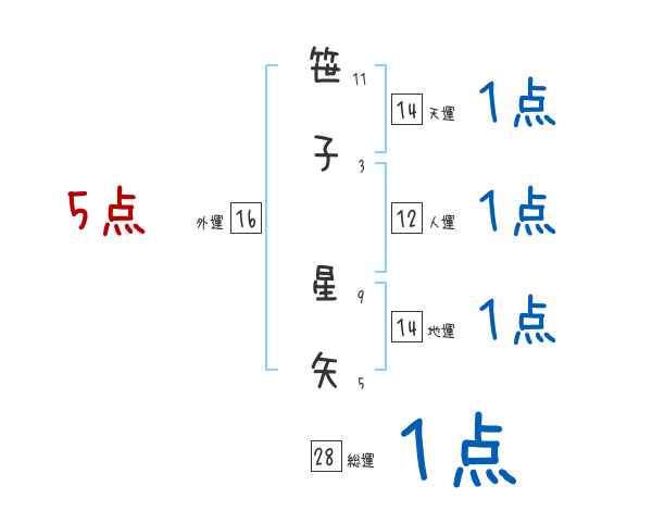 外運![]() | 笹子星矢さんの外運は16画の5つ星!人望が厚く大きく発展する。逆転成功が見える。 生活面を象徴する運勢です。外部から受ける影響力を表し、結婚運、家庭運や職場、環境への順応性を表します。 |