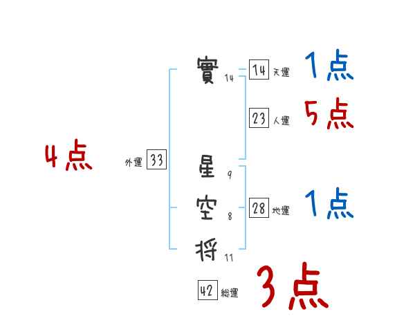 實星空将さんの画数の鑑定結果