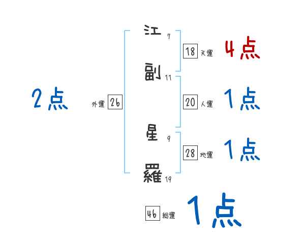 江副星羅さんの画数の鑑定結果