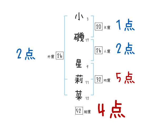 小磯星莉菜さんの画数の鑑定結果