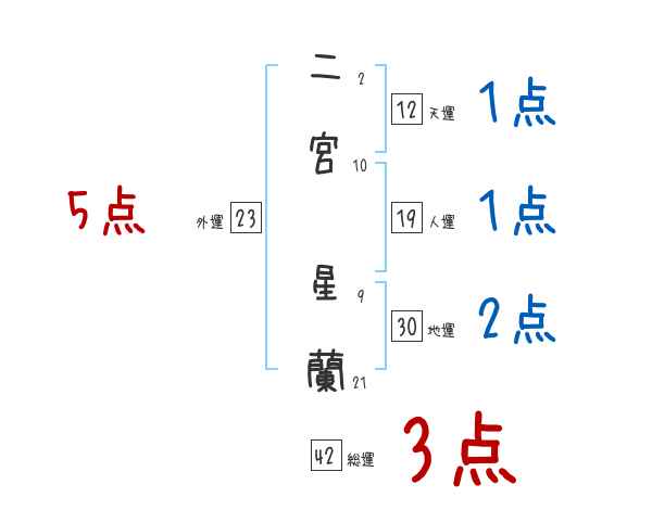 二宮星蘭さんの画数の鑑定結果